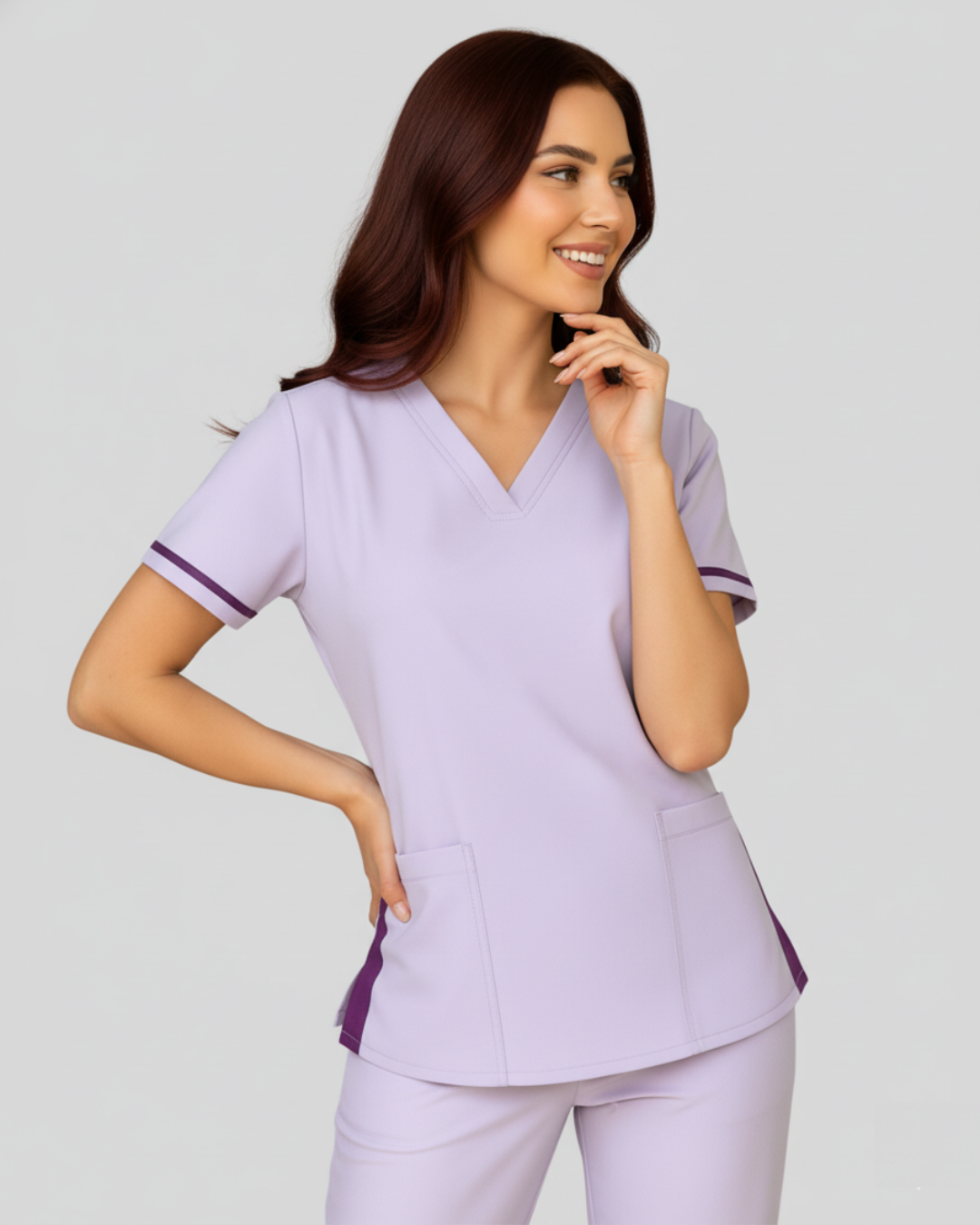El modelo Vivos combina un diseño moderno con detalles sutiles que marcan la diferencia. Su cuello tipo “V” aporta un toque clásico y limpio, mientras que las dos bolsas laterales con vivos decorativos añaden un acento elegante y funcional al uniforme. La espalda con pinzas realza la forma natural del cuerpo, y su corte acinturado proporciona una silueta femenina y profesional. Confeccionado en tejido suave, duradero y de fácil cuidado, es ideal para quienes buscan comodidad, movilidad y distinción durante la jornada laboral.